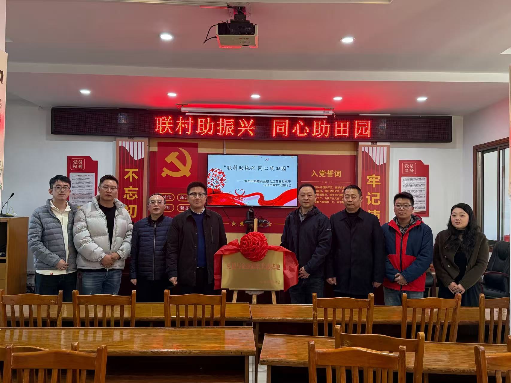 揭牌儀式由昭陽街道黨工委副書記王建云、嚴家村“第一書記”羅亮分別與常州市泰州商會代表、江蘇亮彩電子有限公司代表共同完成。興化市委社會工作部副部長張逸仙,常州市泰州商會常務副會長章九余,江蘇亮彩電子有限公司高級代表勾建權,平安銀行常州飛龍支行行長顧浩,興化市懶夫人食品調(diào)料廠廠長王偉等嘉賓,與嚴家村“兩委”成員共同見證。